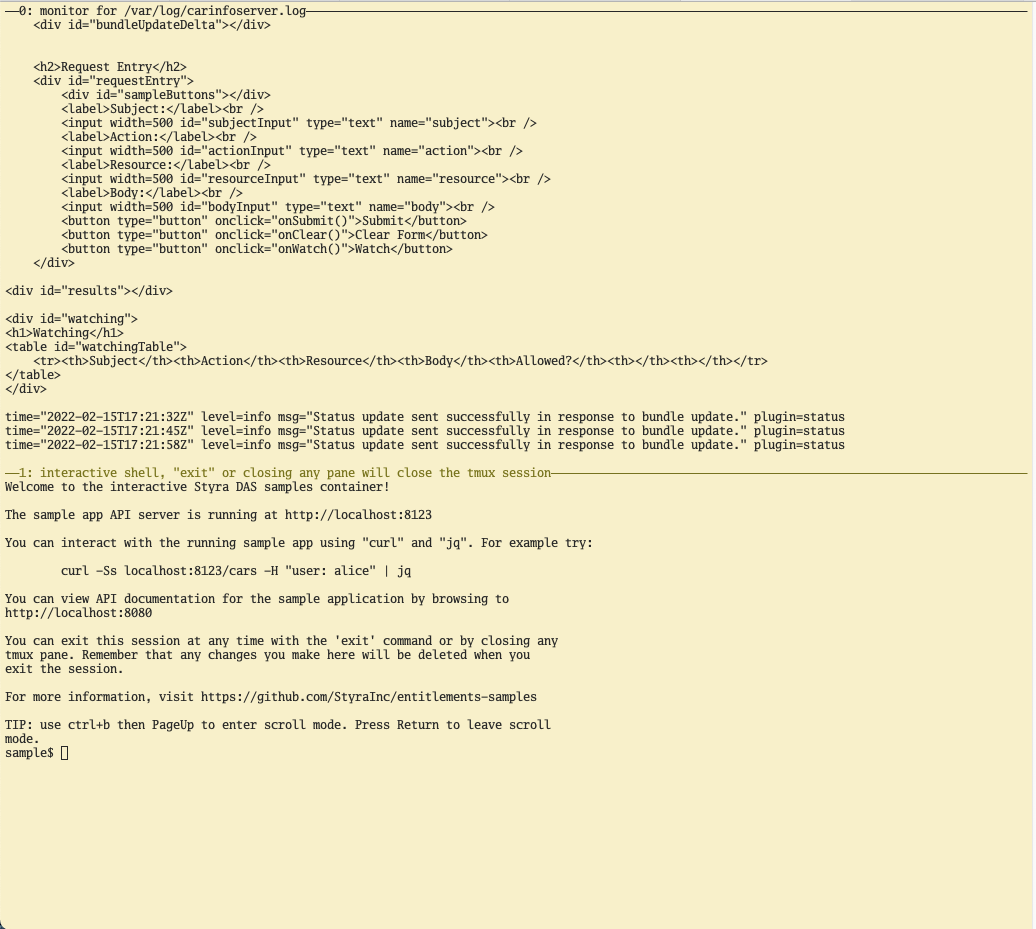 In your web browser, open a new tab and enter the local host URL to see the Entitlements playground.